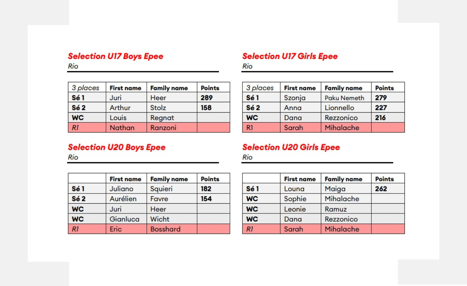 In questi giorni Swiss Fencing ha diramato le selezioni per i Campionati del Mondo U17 e U20 che si terranno a Rio de Janeiro dal 7 al 9 aprile.
