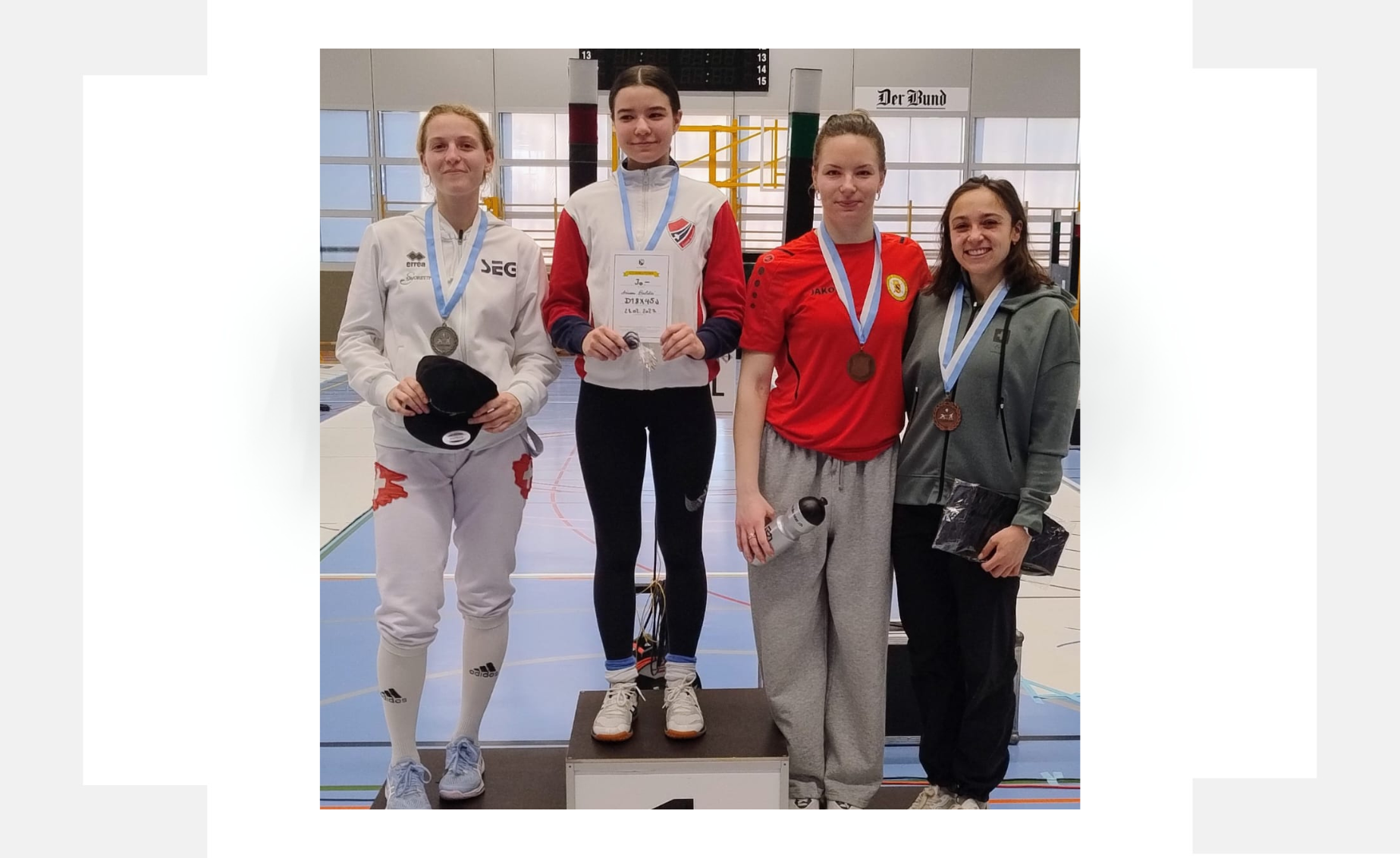 Una numerosa delegazione del club ha preso parte alla tradizionale prova CNJ di Berna, ottenendo risultati di grande rilievo. Protagoniste assolute Arianna Baldini, 🥇 oro nella categoria U20, e Claire Audano, 🥇 oro nella categoria U12. Nella stessa categoria, ottimo 🥉 terzo posto per Mia Bianchi. Si segnalano inoltre importanti piazzamenti nella top 8 per Mila Verda (quinta classificata nell’U17), Vittoria Santarelli (quinta classificata nell’U14), Lili Mirzai (quinta classificata nell’U20) e Vittoria Santini (sesta classificata nell'U12).